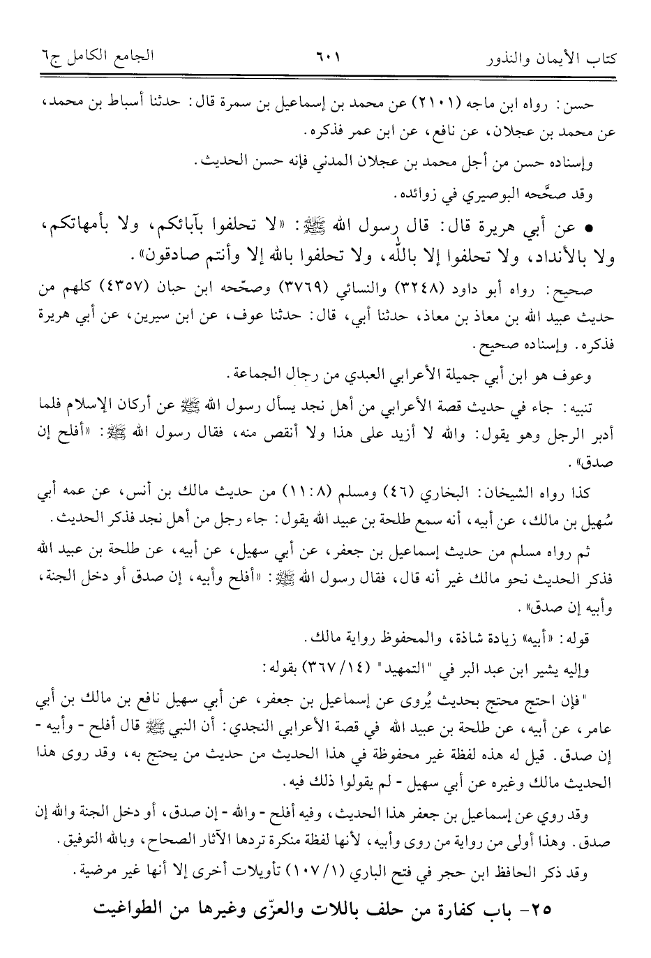 ٢٥ - باب كفارة من حلف باللات والعزّى وغيرها من الطواغيت