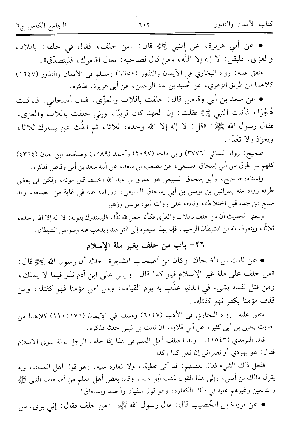 كتاب الجامع الكامل في الحديث الصحيح الشامل المرتب على أبواب الفقه (اسم الجزء: 6)