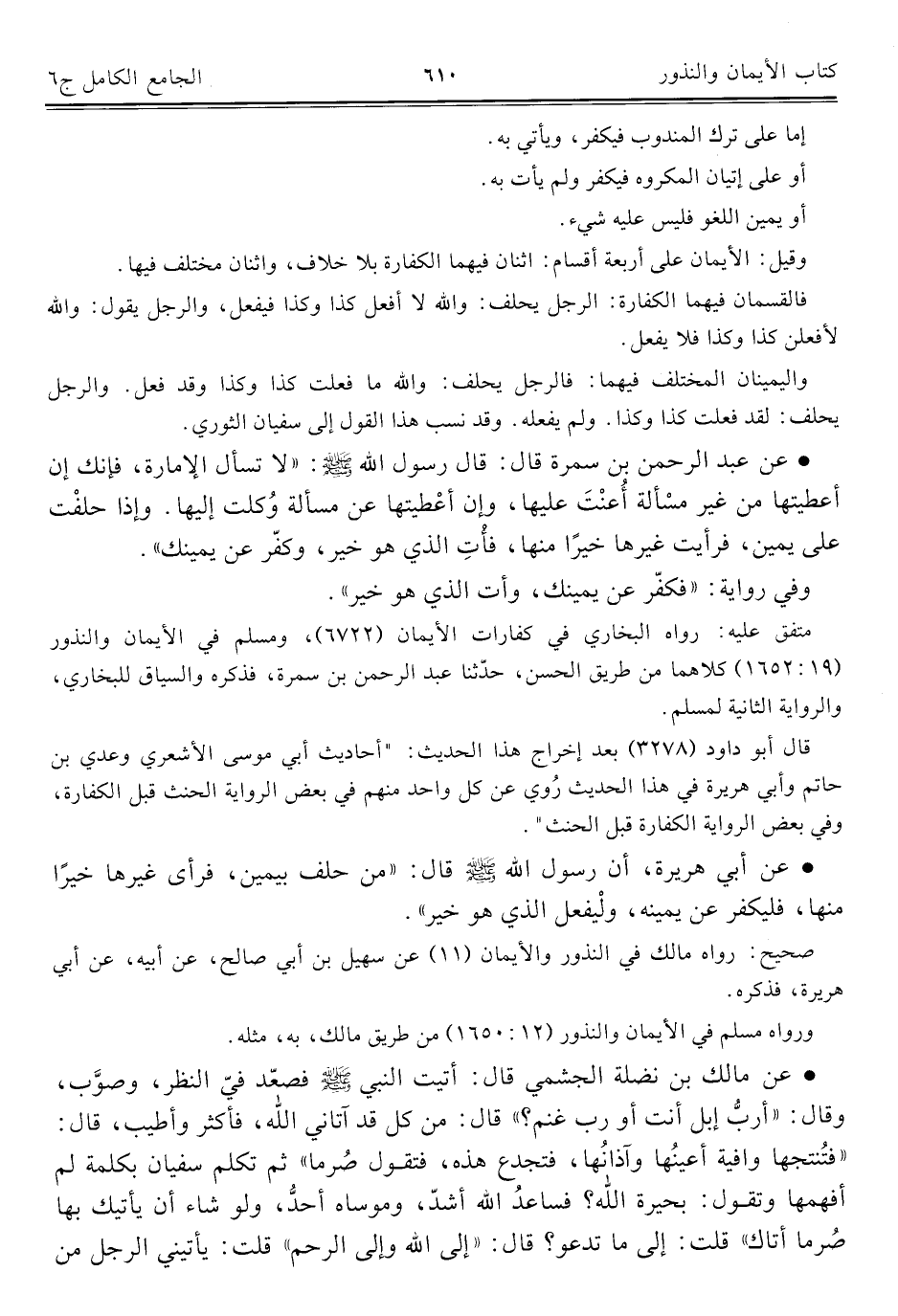كتاب الجامع الكامل في الحديث الصحيح الشامل المرتب على أبواب الفقه (اسم الجزء: 6)