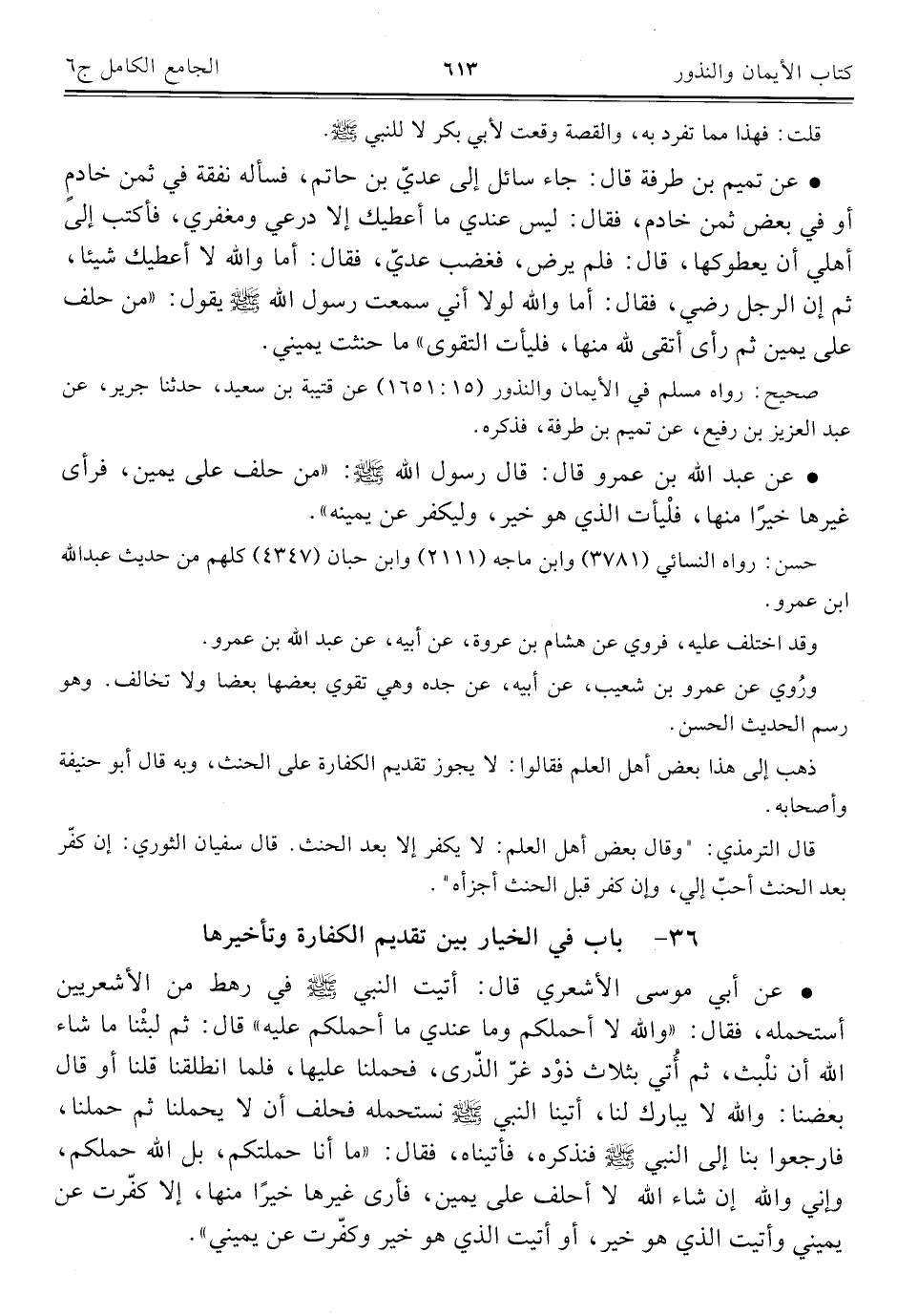 ٣٦ - باب في الخيار بين تقديم الكفارة وتأخيرها