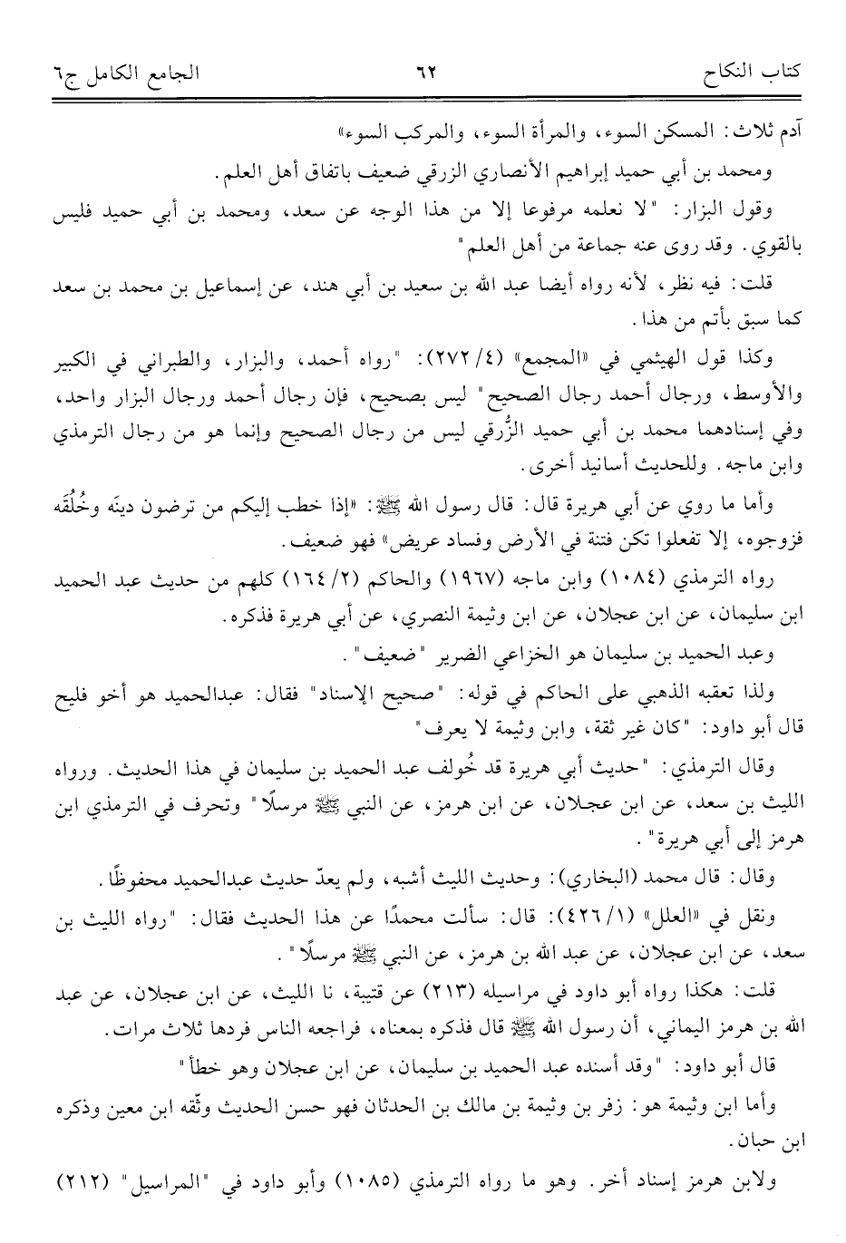 كتاب الجامع الكامل في الحديث الصحيح الشامل المرتب على أبواب الفقه (اسم الجزء: 6)