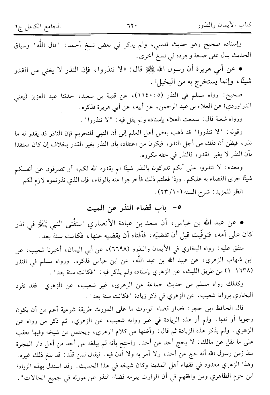 كتاب الجامع الكامل في الحديث الصحيح الشامل المرتب على أبواب الفقه (اسم الجزء: 6)