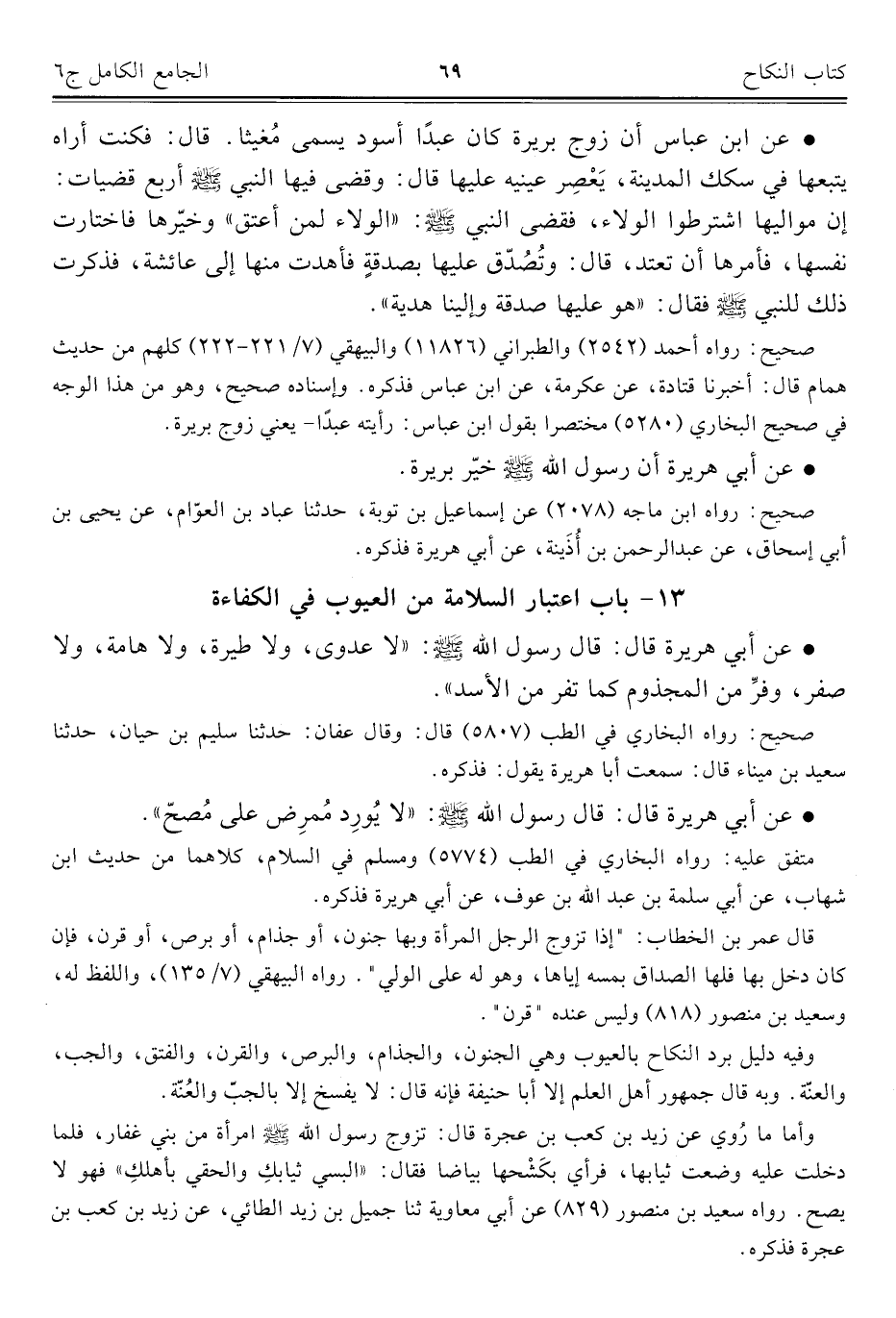 كتاب الجامع الكامل في الحديث الصحيح الشامل المرتب على أبواب الفقه (اسم الجزء: 6)
