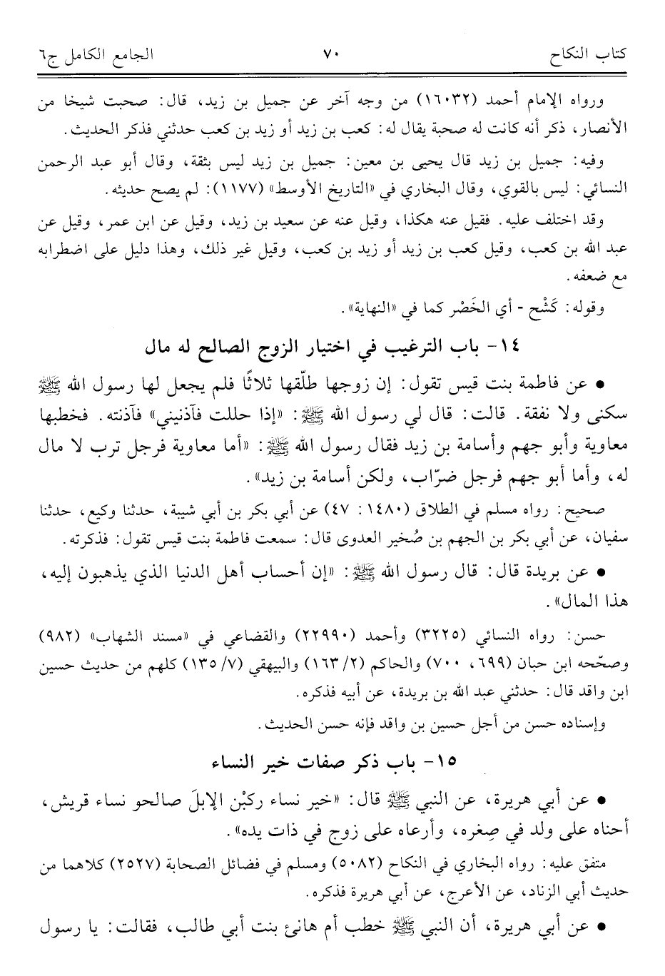 كتاب الجامع الكامل في الحديث الصحيح الشامل المرتب على أبواب الفقه (اسم الجزء: 6)