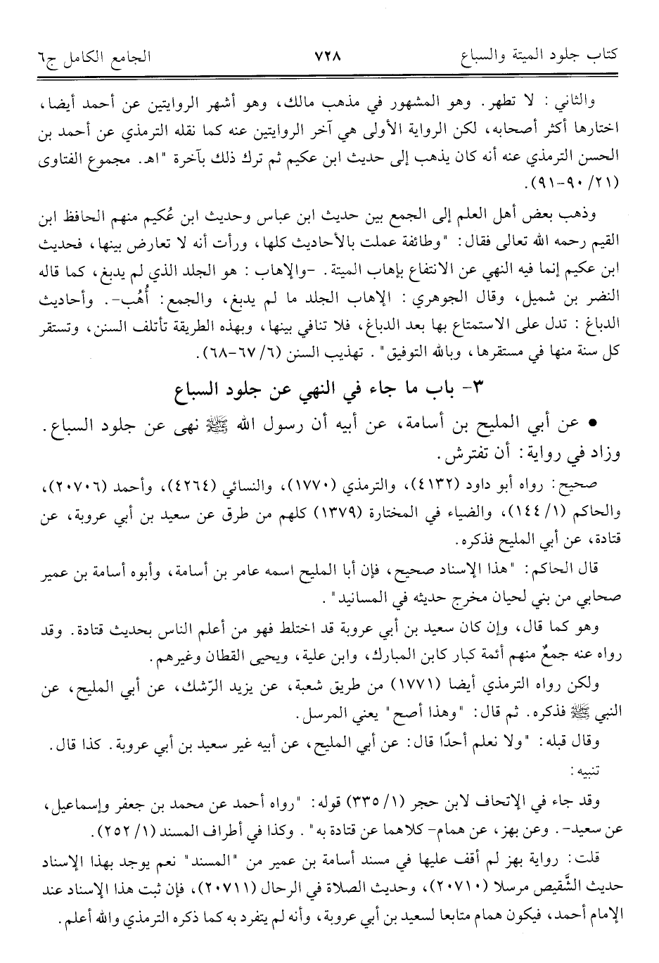 كتاب الجامع الكامل في الحديث الصحيح الشامل المرتب على أبواب الفقه (اسم الجزء: 6)