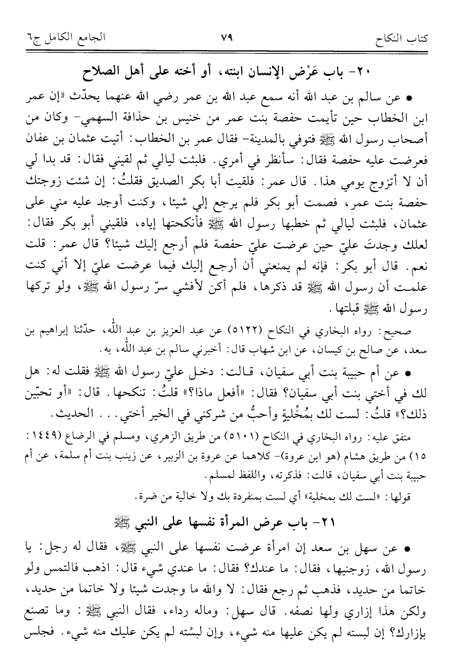 ٢٠ - باب عَرْض الإنسان ابنته، أو أخته على أهل الصلاح