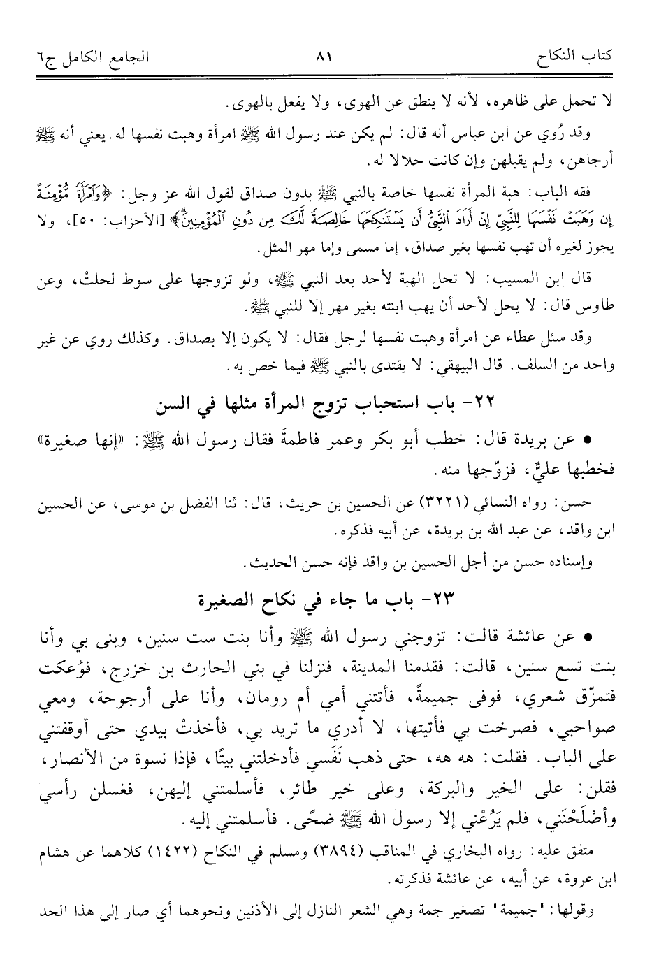 ٢٣ - باب ما جاء في نكاح الصغيرة
