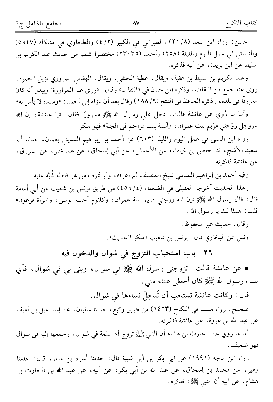 كتاب الجامع الكامل في الحديث الصحيح الشامل المرتب على أبواب الفقه (اسم الجزء: 6)