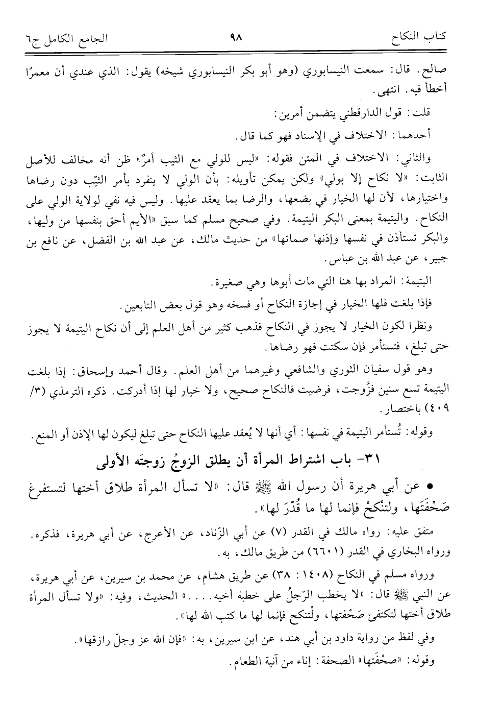 كتاب الجامع الكامل في الحديث الصحيح الشامل المرتب على أبواب الفقه (اسم الجزء: 6)