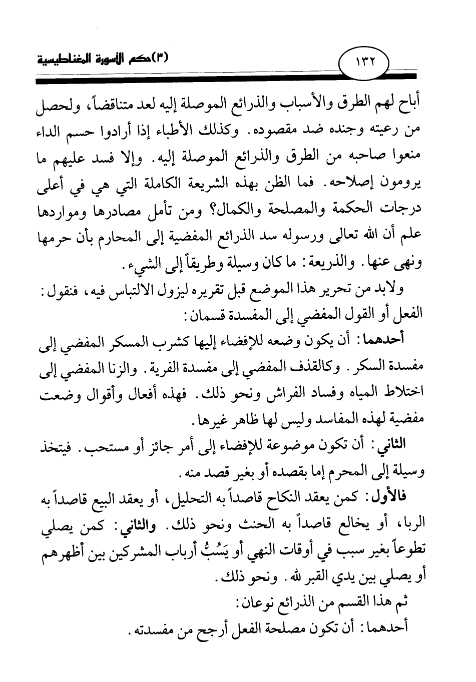 ولا بد من تحرير هذا الموضع قبل تقريره ليزول الالتباس فيه، فنقول: الفعل أو القول المفضي إلى المفسدة قسمان: