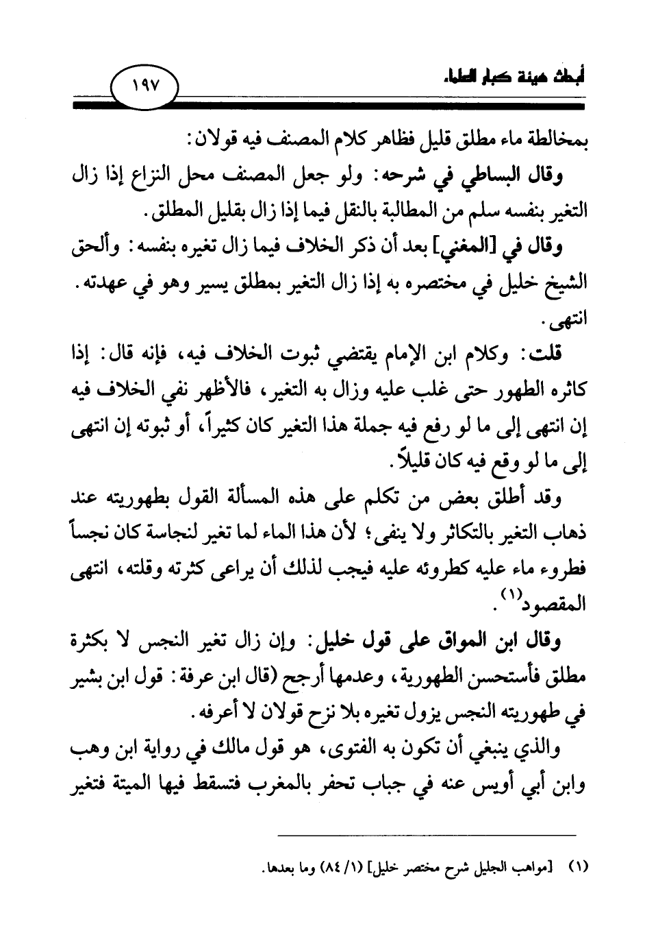 (¬1) [مواهب الجليل شرح مختصر خليل] (1\ 84) وما بعدها.