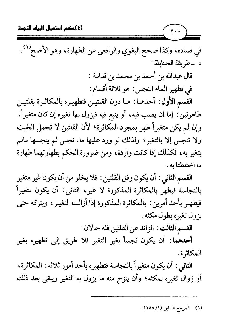 في تطهير الماء النجس: هو ثلاثة أقسام: