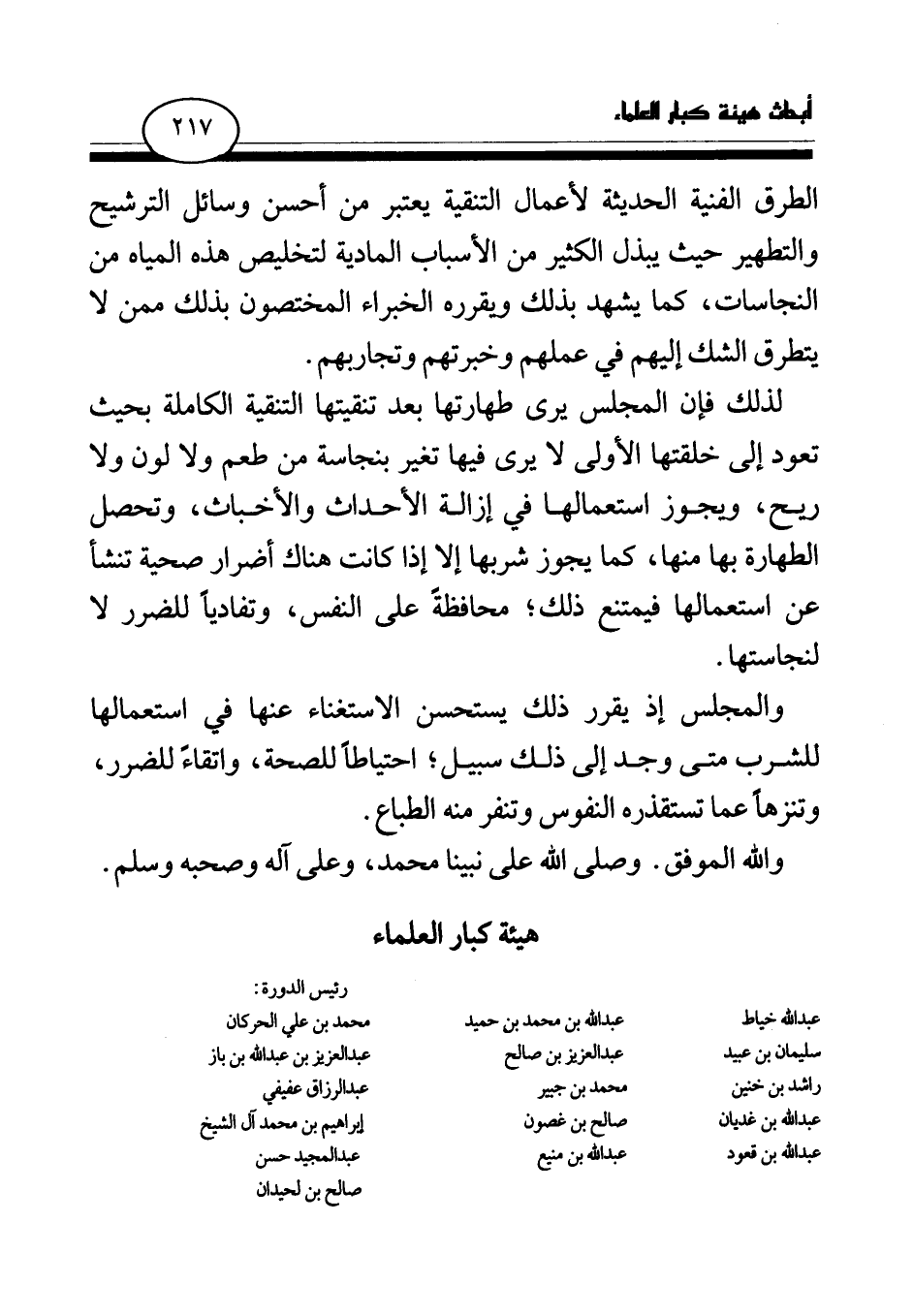 والمجلس إذ يقرر ذلك يستحسن الاستغناء عنها في استعمالها للشرب متى وجد إلى ذلك سبيل؛ احتياطا للصحة، واتقاء للضرر، وتنزها عما تستقذره النفوس وتنفر منه الطباع.