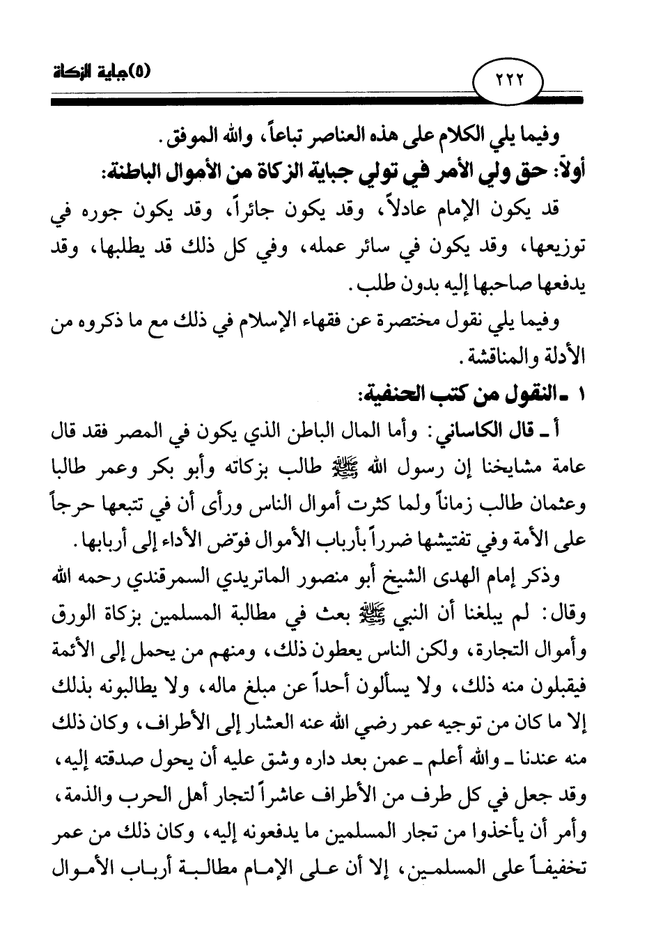 أولا: حق ولي الأمر في تولي جباية الزكاة من الأموال الباطنة: