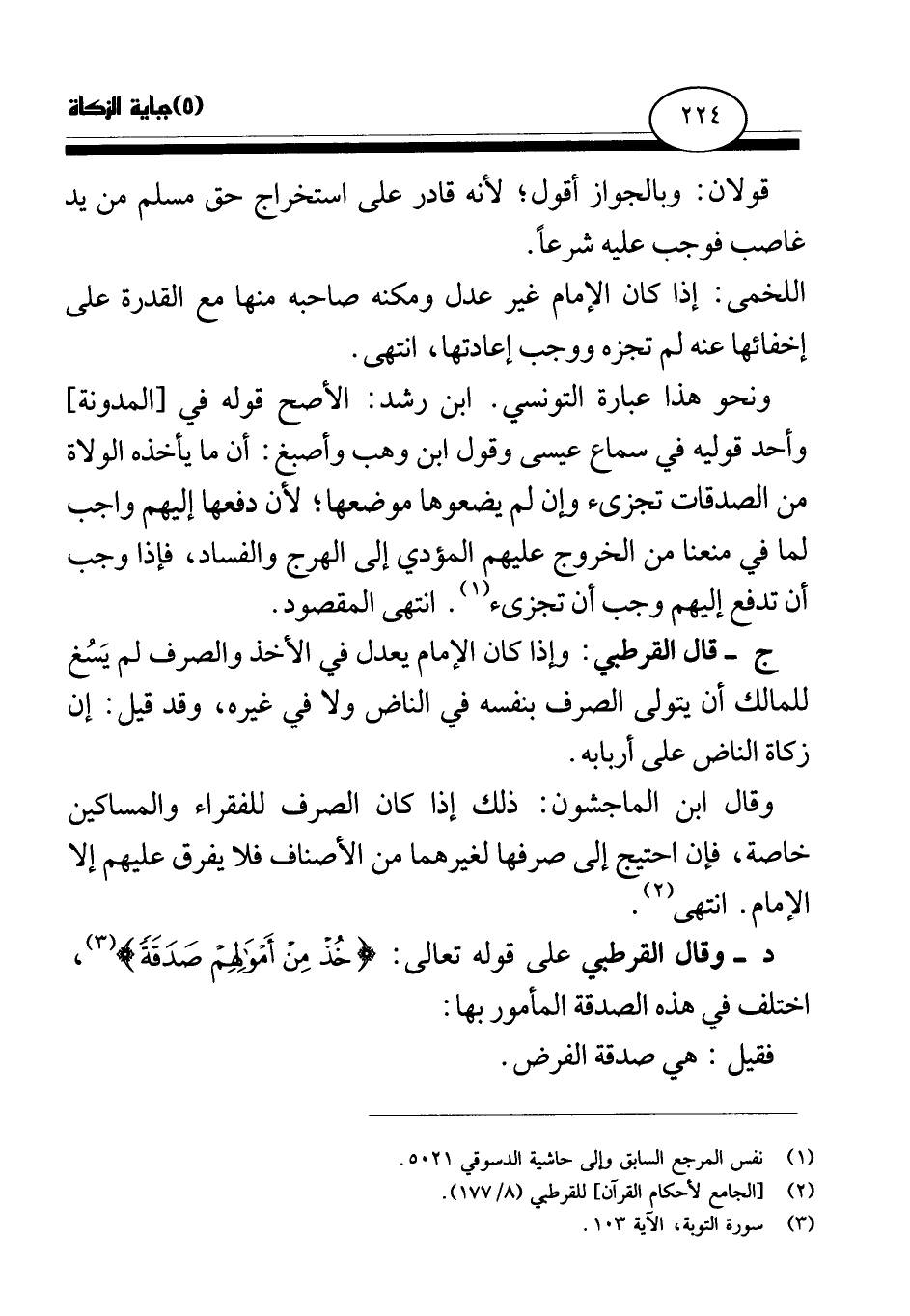 د - وقال القرطبي على قوله تعالى: {خُذْ مِنْ أَمْوَالِهِمْ صَدَقَةً} (¬2) اختلف في هذه الصدقة المأمور بها: