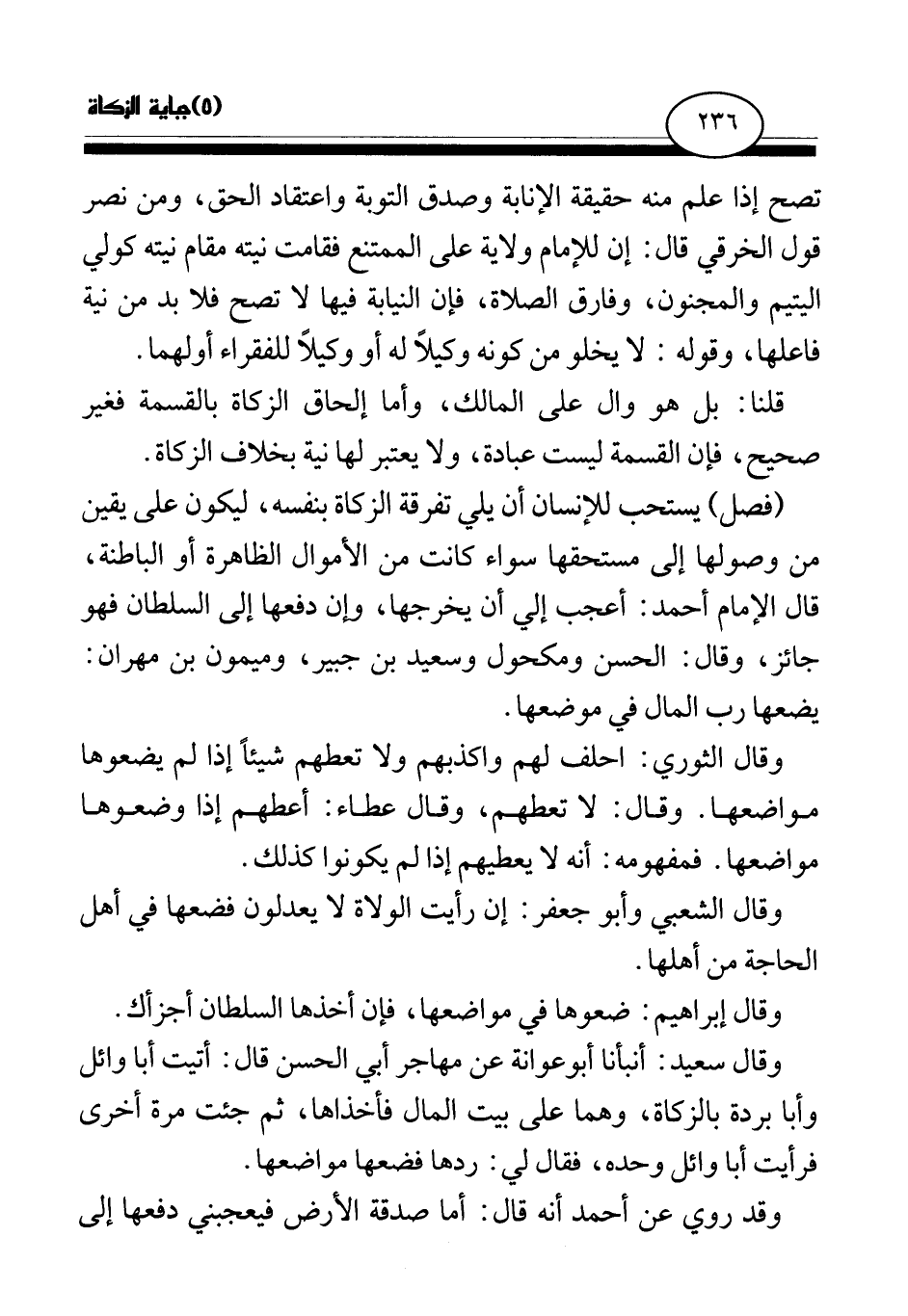 (فصل) يستحب للإنسان أن يلي تفرقة الزكاة بنفسه، ليكون على يقين من وصولها إلى مستحقها، سواء كانت من الأموال الظاهرة أو الباطنة، قال الإمام أحمد: أعجب إلي أن يخرجها، وإن دفعها إلى السلطان فهو جائز، وقال: الحسن ومكحول وسعيد بن جبير، وميمون بن مهران: يضعها رب المال في موضعها.