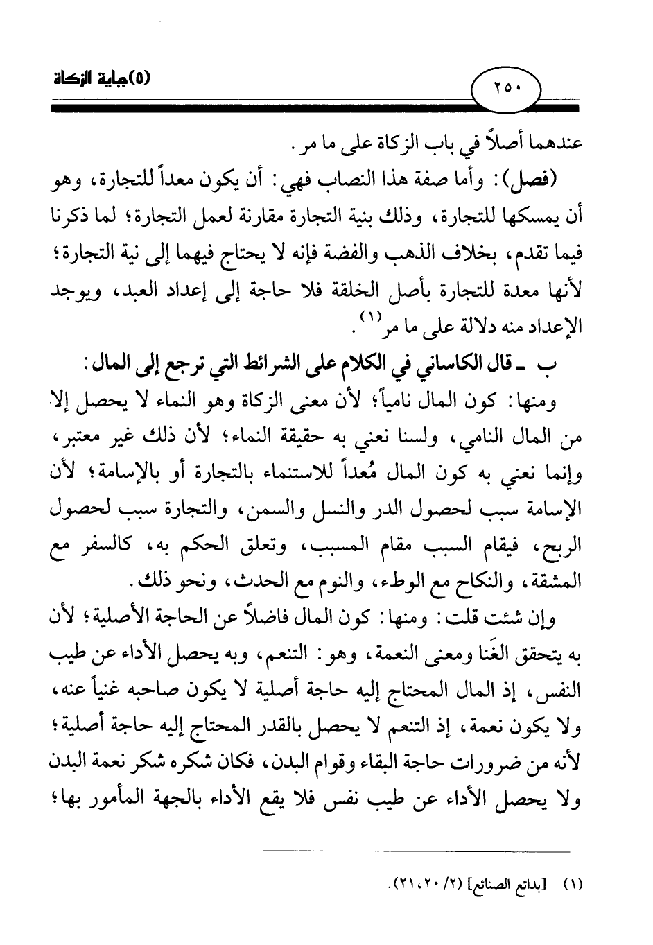 ب - قال الكاساني في الكلام على الشرائط التي ترجع إلى المال: