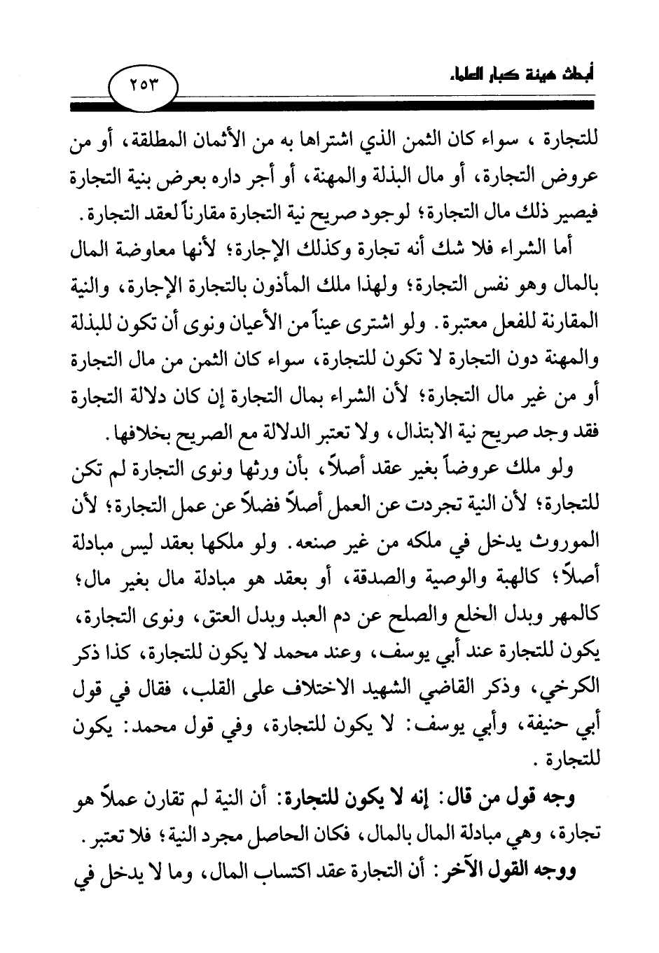 للتجارة، سواء كان الثمن الذي اشتراها به من الأثمان المطلقة، أو من عروض التجارة، أو مال البذلة والمهنة، أو أجر داره بعرض بنية التجارة فيصير ذلك مال التجارة، لوجود صريح نية التجارة مقارنا لعقد التجارة.
