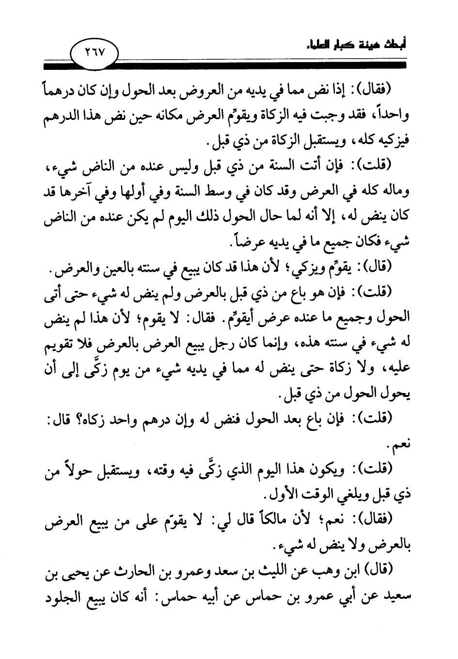 (قلت) : فإن هو باع من ذي قبل بالعرض ولم ينض له شيء حتى أتى الحول وجميع ما عنده عرض أيقوم. فقال: لا يقوم؛ لأن هذا لم ينض له شيء في سنته هذه، وإنما كان رجل يبيع العرض بالعرض فلا تقويم عليه، ولا زكاة حتى ينض له مما في يديه شيء من يوم زكى إلى أن يحول الحول من ذي قبل.