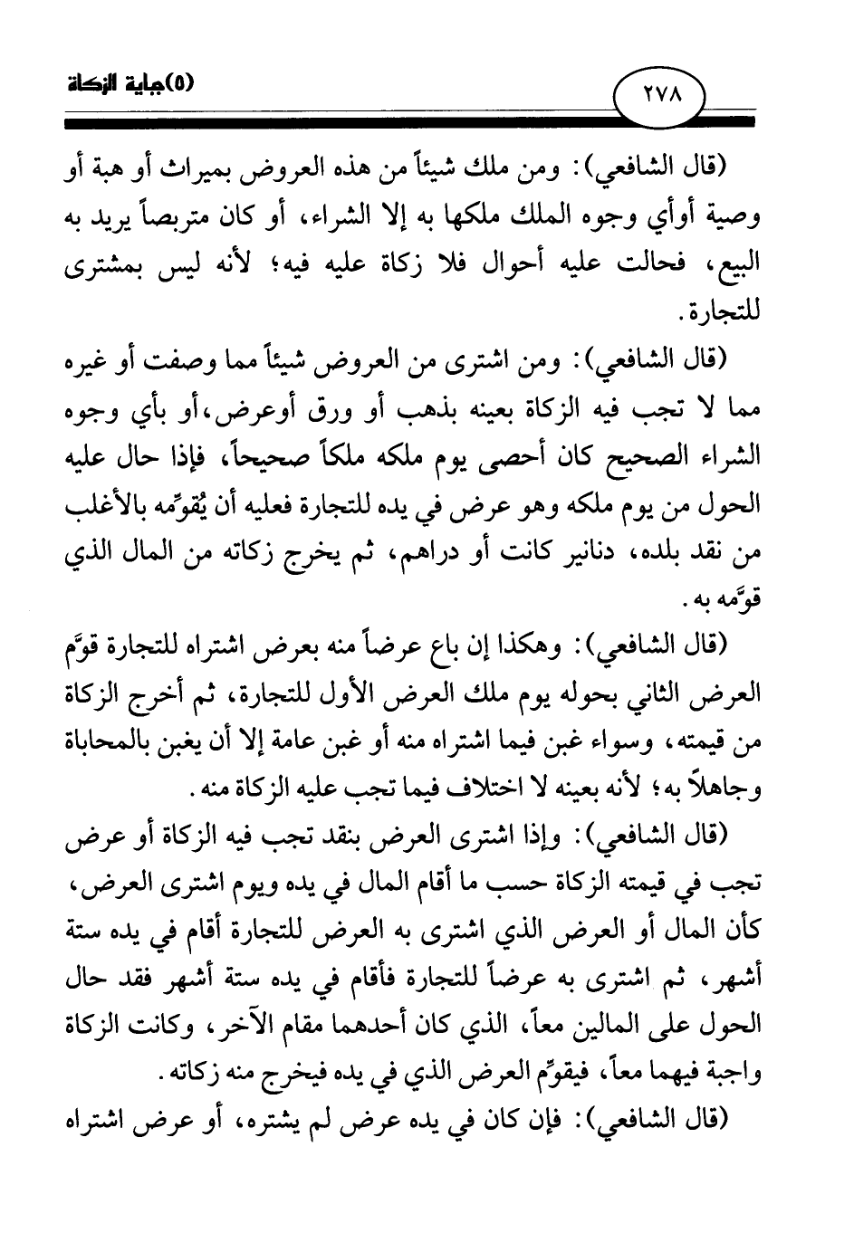 (قال الشافعي) : ومن اشترى من العروض شيئا مما وصفت أو غيره مما لا تجب فيه الزكاة بعينه بذهب أو ورق أو عرض، أو بأي وجوه الشراء الصحيح كان أحصى يوم ملكه ملكا صحيحا، فإذا حال عليه الحول من يوم ملكه وهو عرض في يده للتجارة فعليه أن يقومه بالأغلب من نقد بلده، دنانير كانت أو دراهم، ثم يخرج زكاته من المال الذي قومه به.