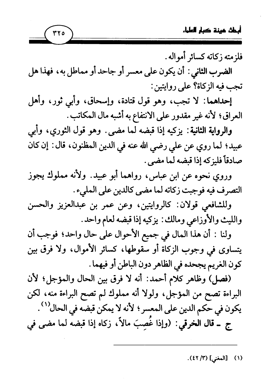 ج- قال الخرقي: (وإذا غصب مالا، زكاه إذا قبضه لما مضى في