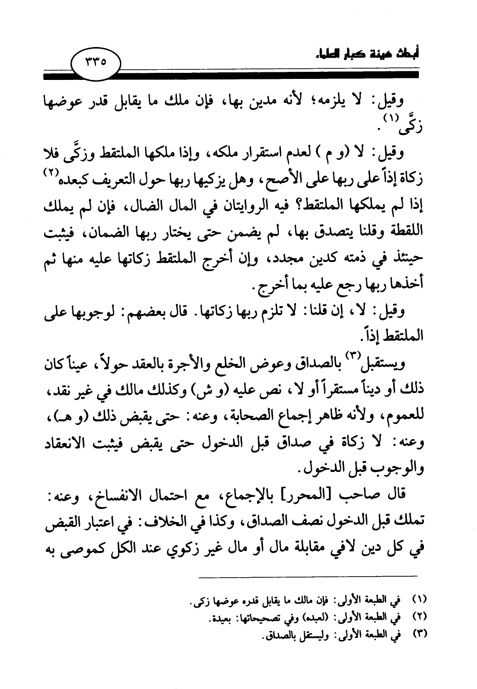 وقيل: لا يلزمه؛ لأنه مدين بها، فإن ملك ما يقابل قدر عوضها زكى (¬1) .