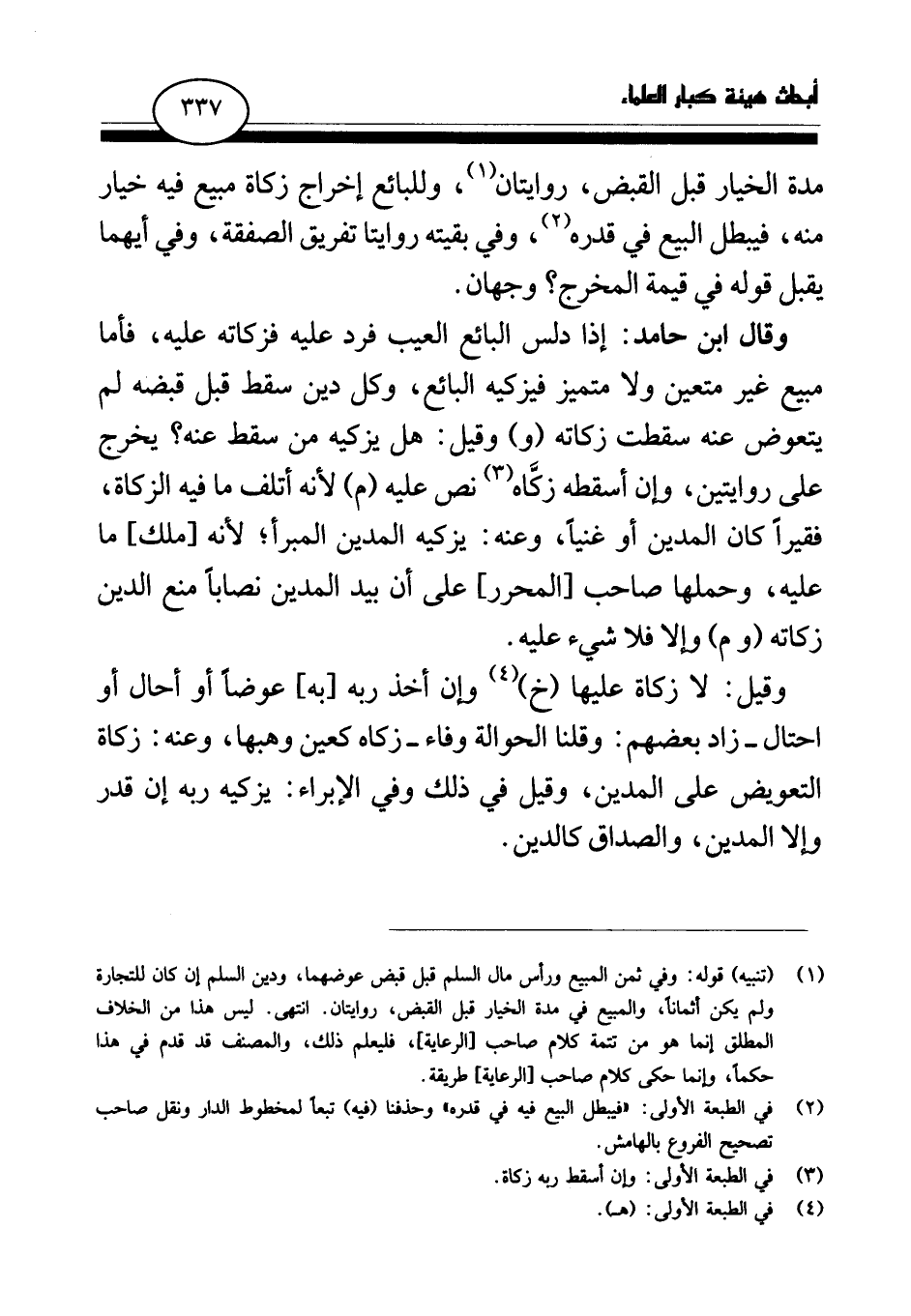 مدة الخيار قبل القبض، روايتان، وللبائع إخراج زكاة مبيع فيه خيار منه، فيبطل البيع في قدره، وفي بقيته روايتا تفريق الصفقة، وفي أيهما يقبل قوله في قيمة المخرج؟ وجهان.