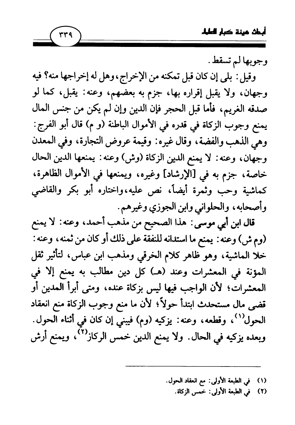 (¬1) في الطبعة الأولى: مع انعقاد الحول.