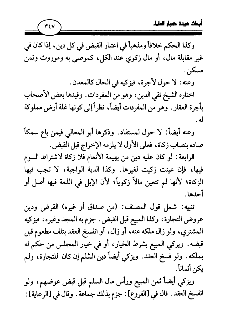 ويزكي أيضا ثمن المبيع ورأس مال السلم قبل قبض عوضهم، ولو انفسخ العقد. قال في [الفروع] : جزم بذلك جماعة. وقال في [الرعاية] :