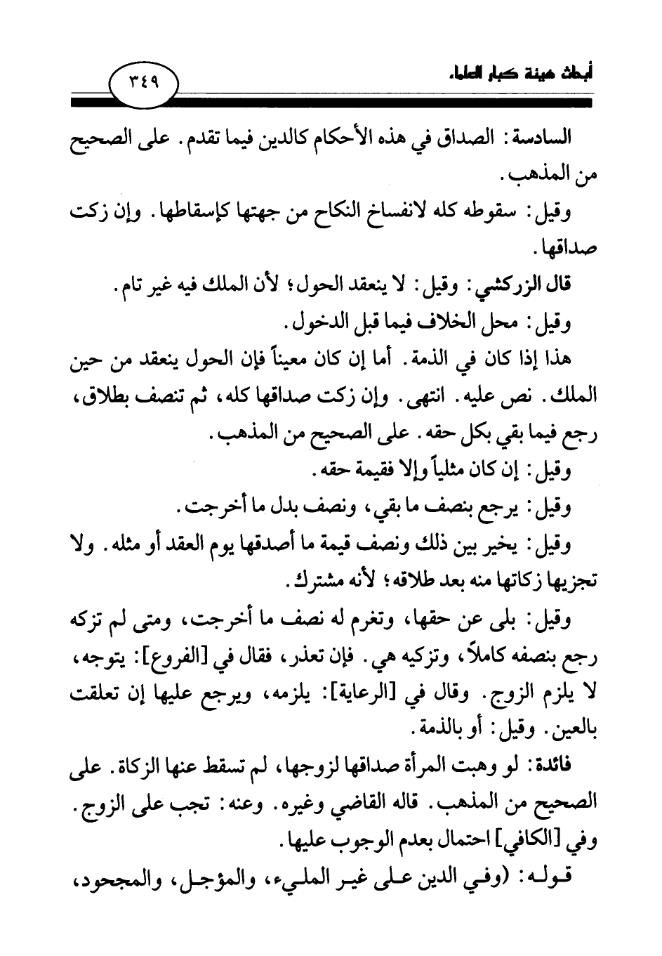 هذا إذا كان في الذمة. أما إن كان معينا فإن الحول ينعقد من حين الملك. نص عليه. انتهى. وإن زكت صداقها كله، ثم تنصف بطلاق، رجع فيما بقي بكل حقه. على الصحيح من المذهب.