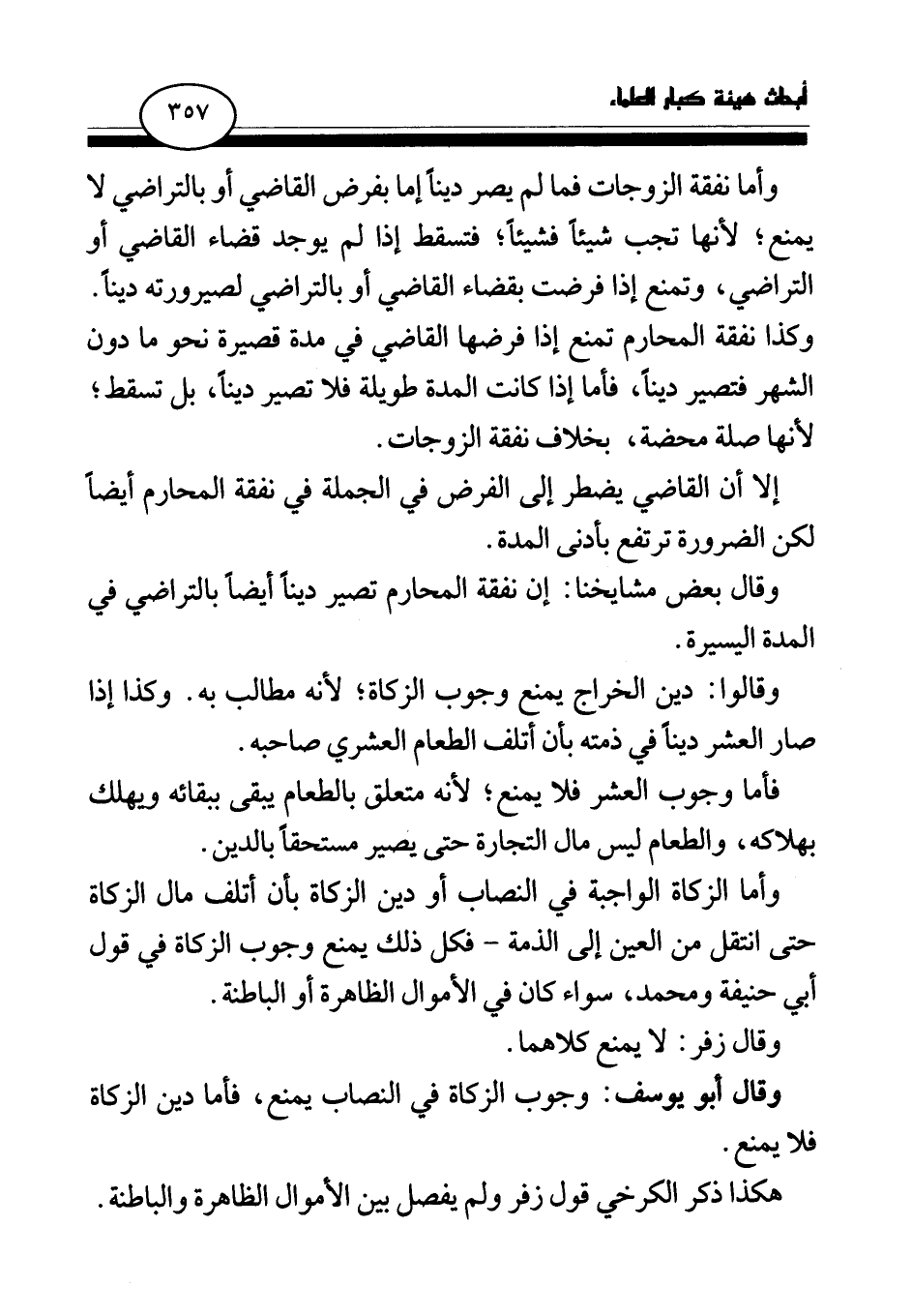 وكذا نفقة المحارم تمنع إذا فرضها القاضي في مدة قصيرة نحو ما دون الشهر فتصير دينا، فأما إذا كانت المدة طويلة فلا تصير دينا، بل تسقط؛ لأنها صلة محضة، بخلاف نفقة الزوجات.