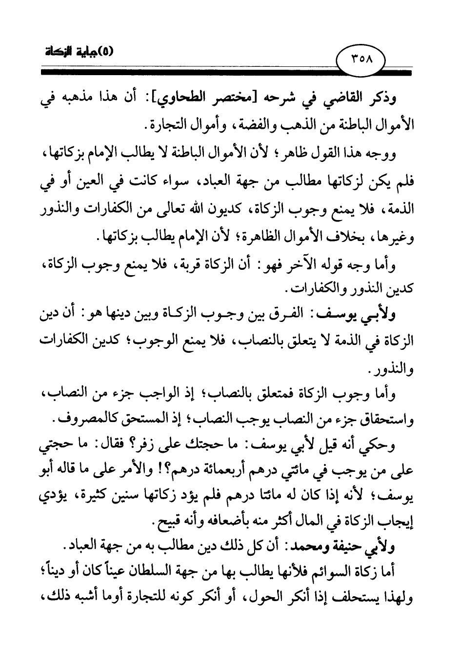 وذكر القاضي في شرحه [مختصر الطحاوي] : أن هذا مذهبه في الأموال الباطنة من الذهب والفضة، وأموال التجارة.