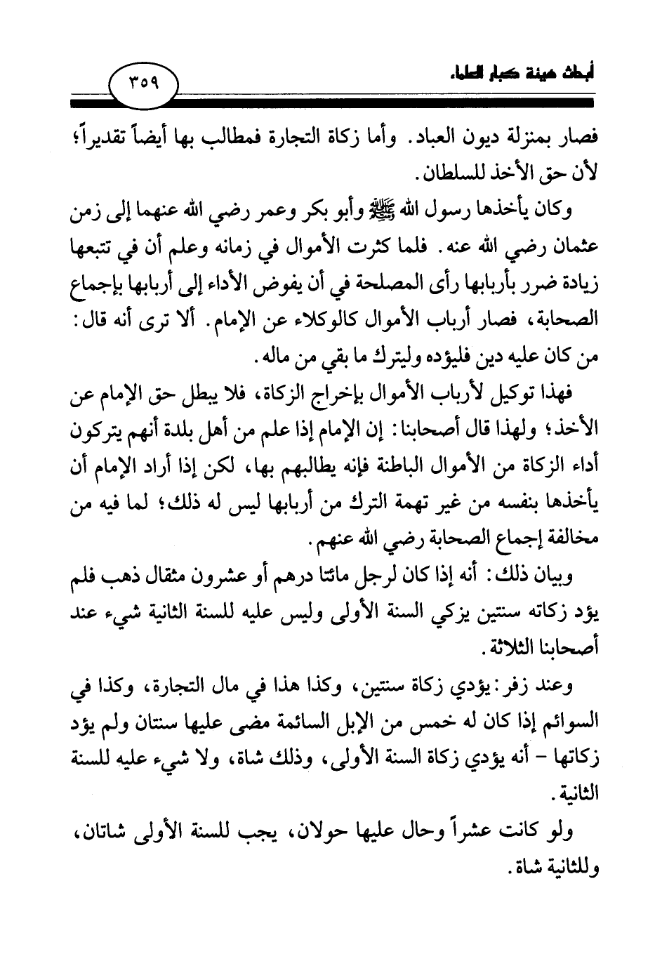 وكان يأخذها رسول الله صلى الله عليه وسلم وأبو بكر وعمر رضي الله عنهما إلى زمن عثمان رضي الله عنه. فلما كثرت الأموال في زمانه وعلم أن في تتبعها زيادة ضرر بأربابها رأى المصلحة في أن يفوض الأداء إلى أربابها بإجماع الصحابة، فصار أرباب الأموال كالوكلاء عن الإمام. ألا ترى أنه قال: من كان عليه دين فليؤده وليترك ما بقي من ماله.