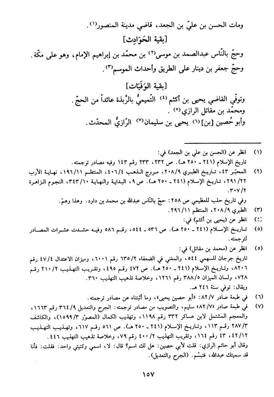 وَتُوفِيَ الْقَاضِي يَحْيَى بْنُ أَكْثَمَ التَّمِيمِيُّ بِالرَّبْذَةِ عَائِدًا مِنَ الْحَجِّ، وَمُحَمَّدُ بْنُ مُقَاتِلٍ الرَّازِيُّ، وَأَبُو حُصَيْنِ [بْنُ] يَحْيَى بْنِ سُلَيْمَانَ الرَّازِيُّ الْمُحَدِّثُ.