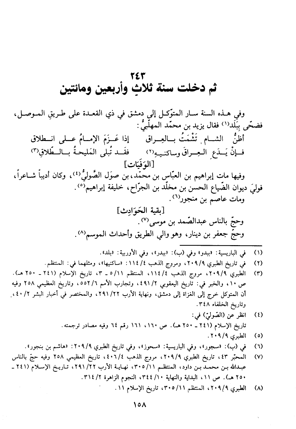 [ثُمَّ دَخَلَتْ سَنَةُ ثَلَاثٍ وَأَرْبَعِينَ وَمِائَتَيْنِ]
