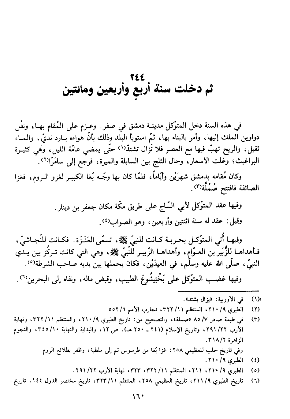 ثُمَّ دَخَلَتْ سَنَةُ أَرْبَعٍ وَأَرْبَعِينَ وَمِائَتَيْنِ