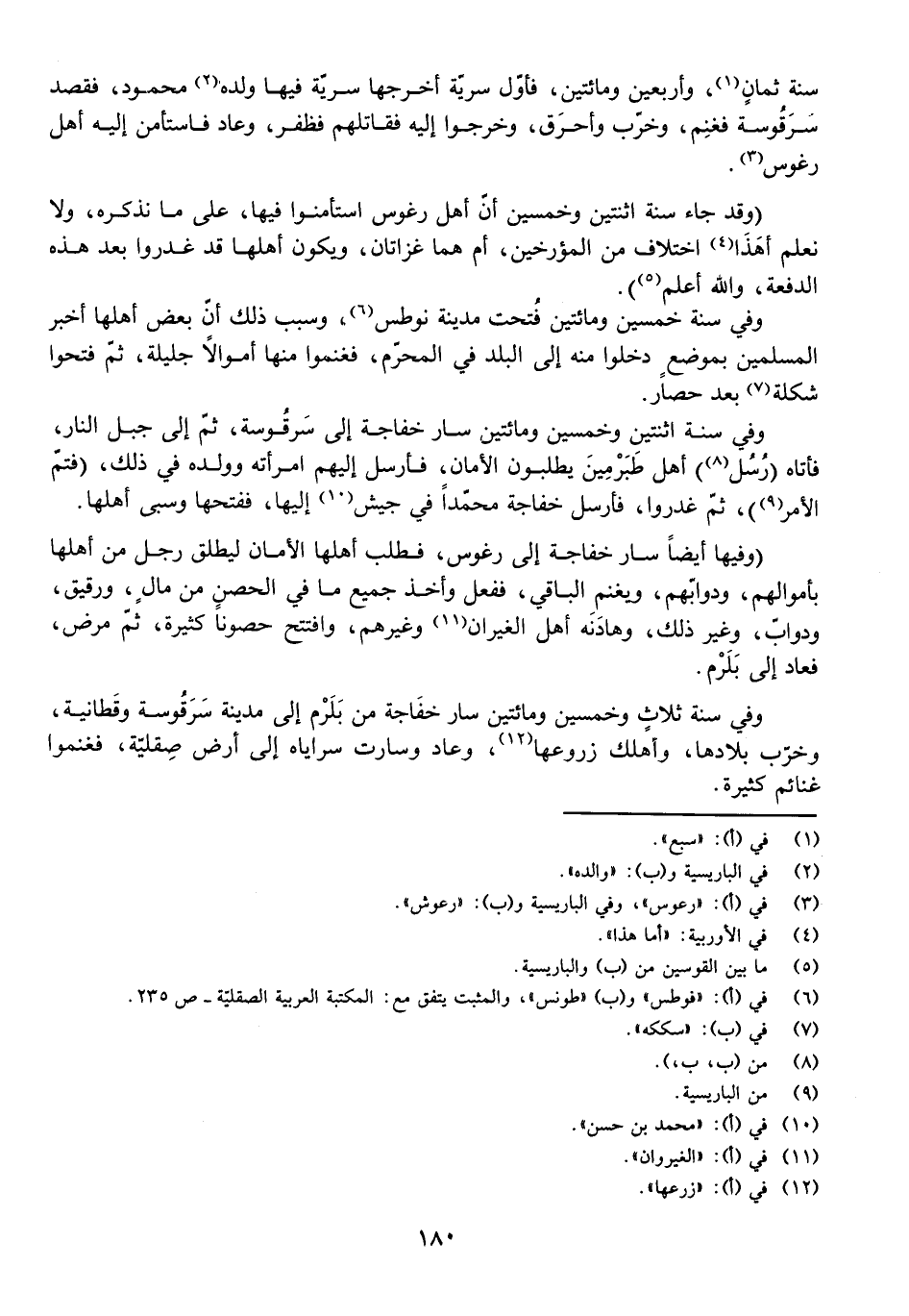 (وَقَدْ جَاءَ سَنَةَ اثْنَتَيْنِ وَخَمْسِينَ أَنَّ أَهْلَ رَغُوسَ اسْتَأْمَنُوا فِيهَا، عَلَى مَا نَذْكُرُهُ، وَلَا نَعْلَمُ أَهَذَا اخْتِلَافٌ مِنَ الْمُؤَرِّخِينَ، أَمْ هُمَا غَزَاتَانِ، وَيَكُونُ أَهْلُهَا قَدْ غَدَرُوا بَعْدَ هَذِهِ الدُّفْعَةِ، وَاللَّهُ أَعْلَمُ) .