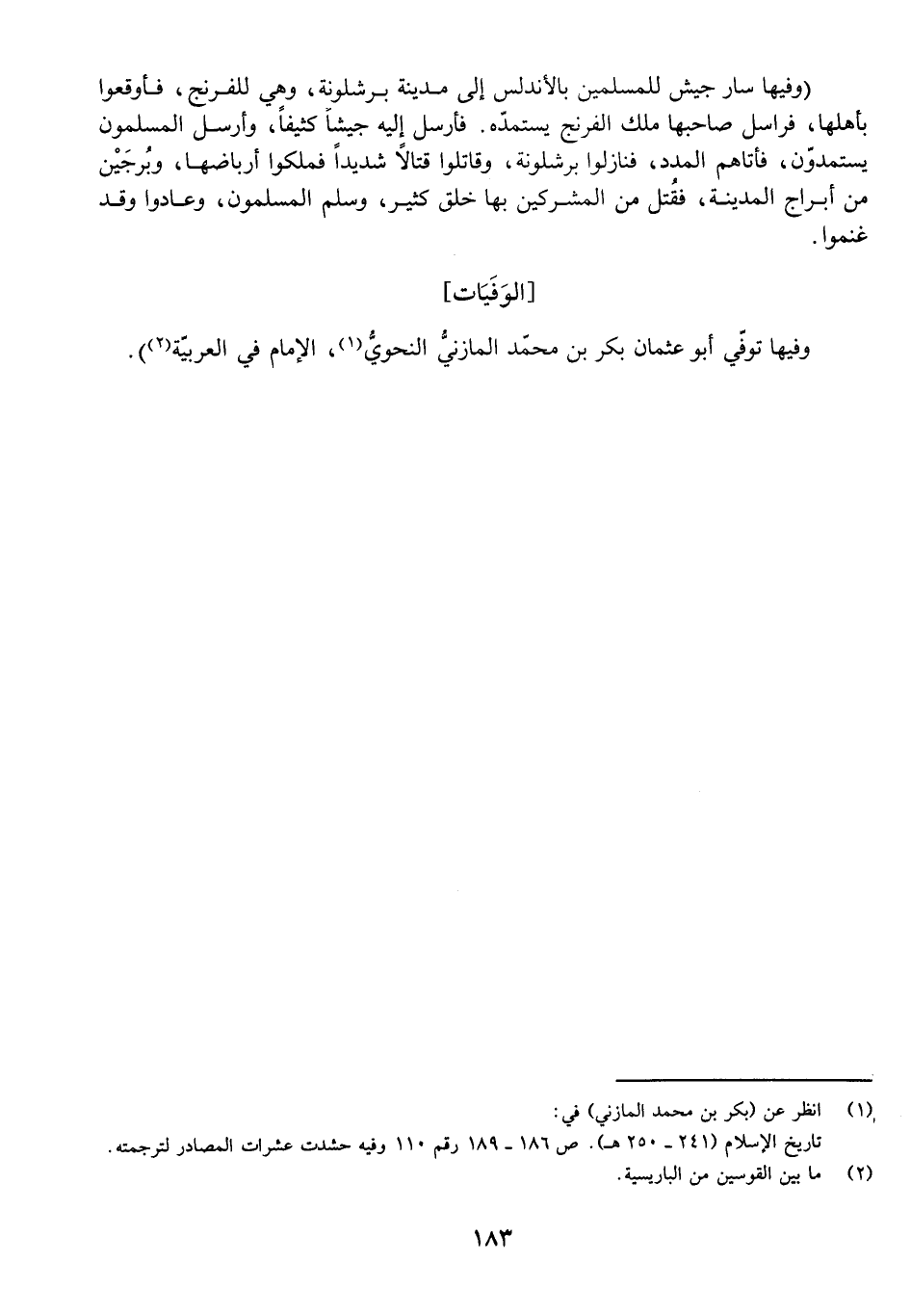 وَفِيهَا تُوُفِّيَ أَبُو عُثْمَانَ بَكْرُ بْنُ مُحَمَّدٍ الْمَازِنِيُّ النَّحْوِيُّ، الْإِمَامُ فِي الْعَرَبِيَّةِ) .