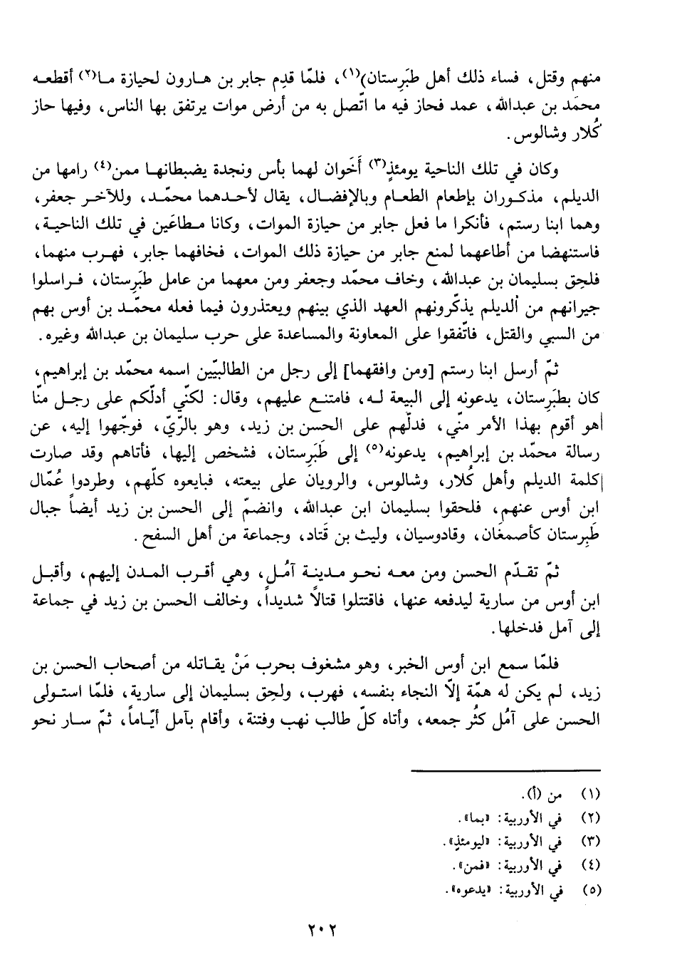 ثُمَّ أَرْسَلَ ابْنَا رُسْتُمَ [وَمَنْ وَافَقَهُمَا] إِلَى رَجُلٍ مِنَ الطَّالِبِيينَ اسْمُهُ مُحَمَّدُ بْنُ إِبْرَاهِيمَ، كَانَ بِطَبَرِسْتَانَ، يَدْعُونَهُ إِلَى الْبَيْعَةِ لَهُ، فَامْتَنَعَ عَلَيْهِمْ، وَقَالَ: لَكِنِّي أَدُلُّكُمْ عَلَى رَجُلٍ مِنَّا هُوَ أَقْوَمُ بِهَذَا الْأَمْرِ مِنِّي، فَدَلَّهُمْ عَلَى الْحَسَنِ بْنِ زَيْدٍ، وَهُوَ بِالرَّيِّ، فَوَجَّهُوا إِلَيْهِ، عَنْ رِسَالَةِ مُحَمَّدِ بْنِ إِبْرَاهِيمَ، يَدْعُونَهُ إِلَى طَبَرِسْتَانَ، فَشَخَّصَ إِلَيْهَا، فَأَتَاهُمْ وَقَدْ صَارَتْ كَلِمَةُ الدَّيْلَمِ وَأَهْلِ كُلَارَ، وَشَالُوسَ، وَالرَّوِيَّانِ عَلَى بَيْعَتِهِ، فَبَايَعُوهُ كُلُّهُمْ، وَطَرَدُوا عُمَّالَ ابْنِ أَوْسٍ عَنْهُمْ، فَلَحِقُوا بِسُلَيْمَانَ بْنِ عَبْدِ اللَّهِ، وَانْضَمَّ إِلَى الْحَسَنِ بْنِ زَيْدٍ أَيْضًا جِبَالُ طَبَرِسْتَانَ كَأَصْمَغَانَ، وَقَادُوسِيَانَ، وَلَيْثُ بْنُ قَتَادَ، وَجَمَاعَةٌ مِنْ أَهْلِ السَّفْحِ.