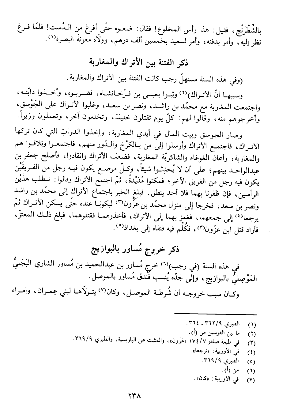 فِي هَذِهِ السَّنَةِ (فِي رَجَبٍ) خَرَجَ مُسَاوِرُ بْنُ عَبْدِ الْحَمِيدِ بْنِ مُسَاوِرٍ الشَّارِيُّ الْبَجَلِيُّ الْمَوْصِلِيُّ بِالْبَوَازِيجِ، وَإِلَى جَدِّهِ يُنْسَبُ فُنْدُقُ مُسَاوِرٍ بِالْمَوْصِلِ.
