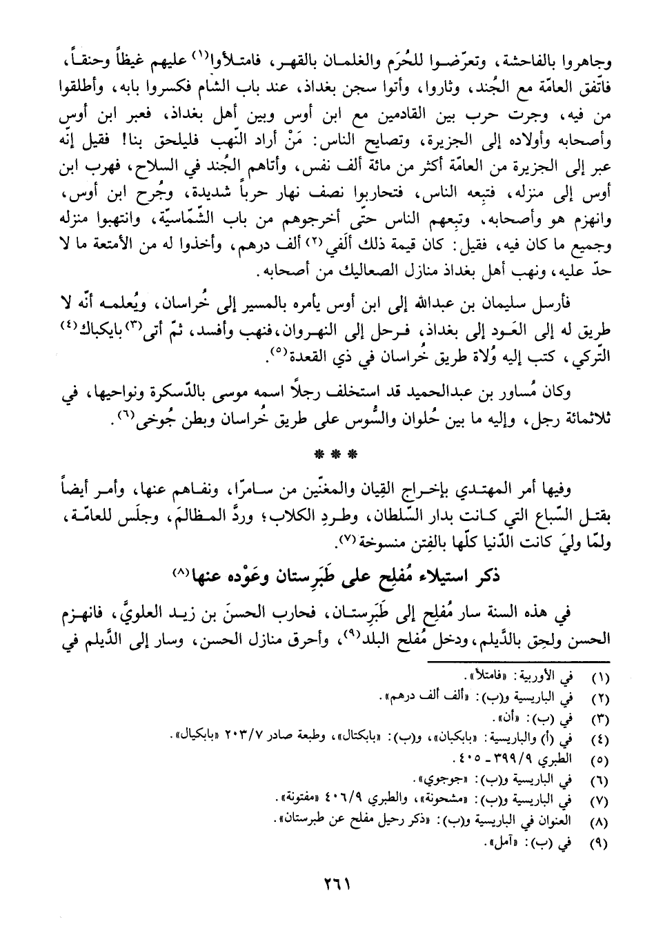 ذِكْرُ اسْتِيلَاءِ مُفْلِحٍ عَلَى طَبَرِسْتَانَ وَعَوْدِهِ عَنْهَا