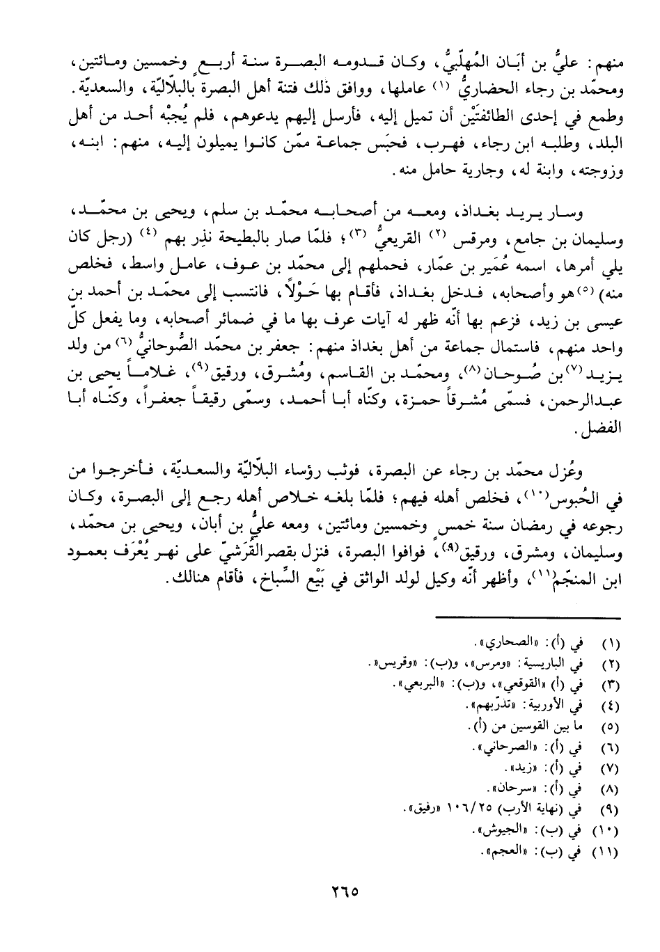 مِنْهُمْ: عَلِيُّ بْنُ أَبَانٍ الْمُهَلَّبِيُّ، وَكَانَ قُدُومُهُ الْبَصْرَةَ سَنَةَ أَرْبَعٍ وَخَمْسِينَ وَمِائَتَيْنِ، وَمُحَمَّدُ بْنُ رَجَاءٍ الْحَضَارِيُّ عَامِلُهَا، وَوَافَقَ ذَلِكَ فِتْنَةَ أَهْلِ الْبَصْرَةِ بِالْبِلَالِيَّةِ، وَالسَّعْدِيَّةِ.