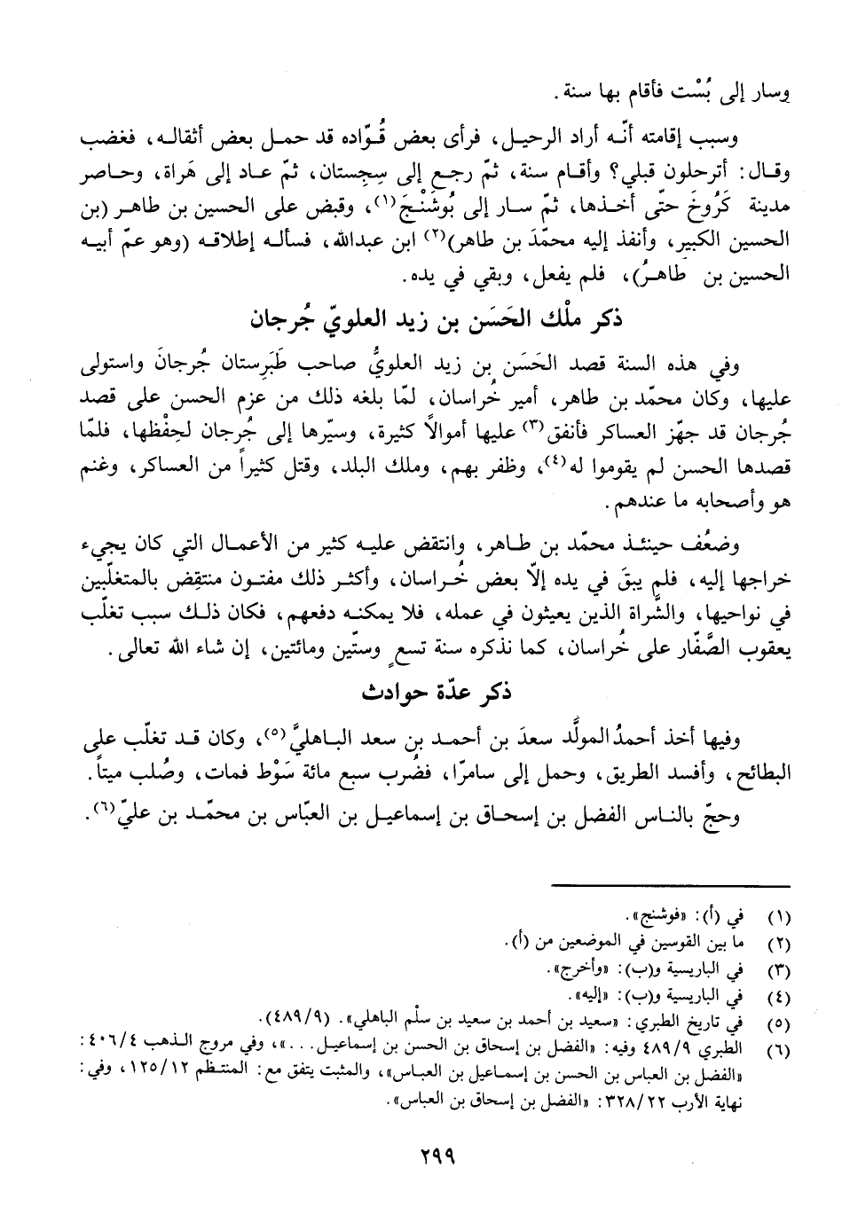 وَفِي هَذِهِ السَّنَةِ قَصَدَ الْحَسَنُ بْنُ زَيْدٍ الْعَلَوِيُّ صَاحِبُ طَبَرِسْتَانَ جُرْجَانَ وَاسْتَوْلَى عَلَيْهَا، وَكَانَ مُحَمَّدُ بْنُ طَاهِرٍ أَمِيرَ خُرَاسَانَ، لَمَّا بَلَغَهُ مِنْ عَزْمِ الْحَسَنِ عَلَى قَصْدِ جُرْجَانَ قَدْ جَهَّزَ الْعَسَاكِرَ فَأَنْفَقَ عَلَيْهَا أَمْوَالًا كَثِيرَةً، وَسَيَّرَهَا إِلَى جُرْجَانَ لِحِفْظِهَا، فَلَمَّا قَصَدَهَا الْحَسَنُ لَمْ يَقُومُوا لَهُ، وَظَفِرَ بِهِمْ وَمَلَكَ الْبَلَدَ، وَقَتَلَ كَثِيرًا مِنَ الْعَسَاكِرِ، وَغَنِمَ هُوَ وَأَصْحَابُهُ مَا عِنْدَهُمْ.