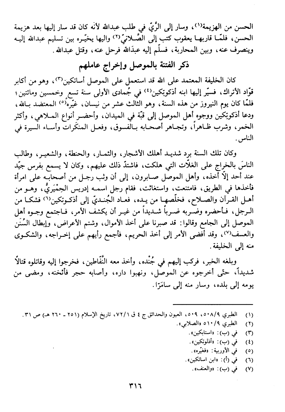 ذِكْرُ الْفِتْنَةِ بِالْمَوْصِلِ وَإِخْرَاجِ عَامِلِهِمْ