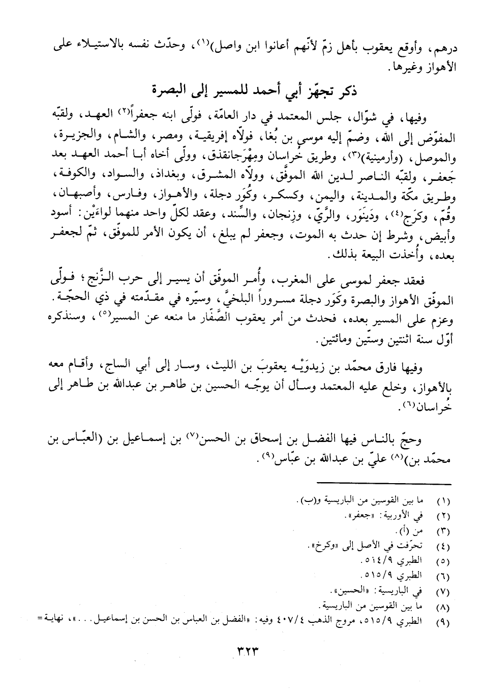 فَعَقَدَ جَعْفَرٌ لِمُوسَى عَلَى الْمَغْرِبِ، وَأُمِرَ الْمُوَفَّقَ أَنْ يَسِيرَ إِلَى حَرْبِ الزَّنْجِ ; فَوَلَّى الْمُوَفَّقُ الْأَهْوَازَ وَالْبَصْرَةَ، وَكُوَرَ دِجْلَةَ مَسْرُورًا الْبَلْخِيَّ، وَسَيَّرَهُ فِي مُقَدِّمَتِهِ فِي ذِي الْحِجَّةِ.