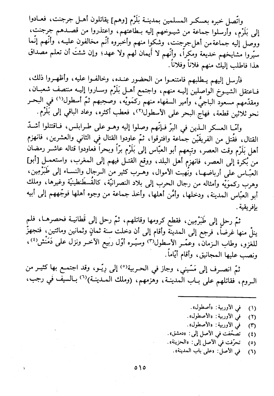 وَاتَّصَلَ خَبَرُهُ بِعَسْكَرِ الْمُسْلِمِينَ بِمَدِينَةِ بَلَرْمَ [وَهُمْ] يُقَاتِلُونَ أَهْلَ جَرْجَنْتَ، فَعَادُوا إِلَى بَلَرْمَ، وَأَرْسَلُوا جَمَاعَةً مِنْ شُيُوخِهِمْ إِلَيْهِ بِطَاعَتِهِمْ، وَاعْتَذَرُوا مِنْ قَصْدِهِمْ جَرْجَنْتَ، وَوَصَلَ إِلَيْهِ جَمَاعَةٌ مِنْ أَهْلِ جَرْجَنْتَ، وَشَكَوْا مِنْهُمْ وَأَخْبَرُوهُ أَنَّهُمْ مُخَالِفُونَ عَلَيْهِ، وَأَنَّهُمْ إِنَّمَا سَيَّرُوا مَشَايِخَهُمْ خَدِيعَةً وَمَكْرًا، وَأَنَّهُمْ لَا أَيْمَانَ لَهُمْ وَلَا عَهْدَ ; وَإِنْ شِئْتَ أَنْ تَعْلَمَ مِصْدَاقَ هَذَا فَاطْلُبْ إِلَيْكَ مِنْهُمْ فُلَانًا وَفُلَانًا.