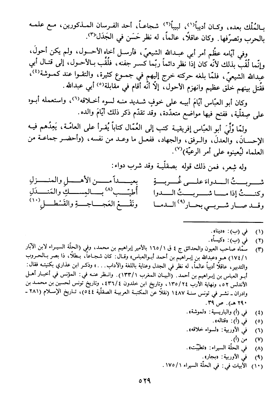 بِالْمُلْكِ بَعْدَهُ، وَكَانَ أَدِيبًا لَبِيبًا شُجَاعًا أَحَدَ الْفُرْسَانِ الْمَذْكُورِينَ مَعَ عِلْمِهِ بِالْحَرْبِ، وَتَصَرُّفِهَا. وَكَانَ عَاقِلًا عَالِمًا لَهُ نَظَرٌ حَسَنٌ فِي الْجَدَلِ.
