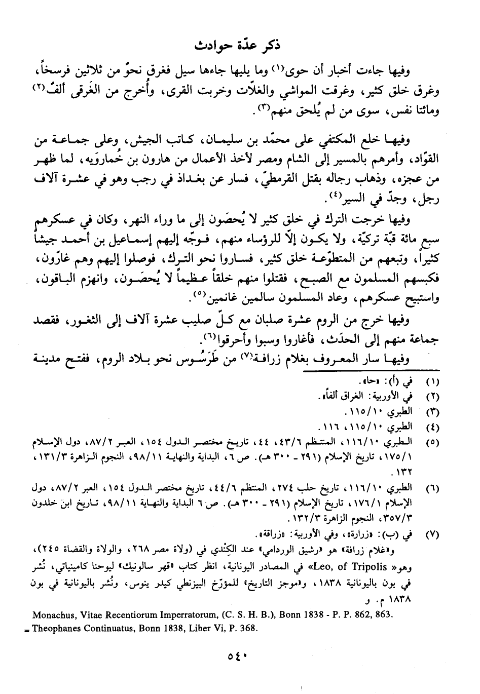 وَفِيهَا خَرَجَ مِنَ الرُّومِ عَشَرَةُ صُلْبَانٍ مَعَ كُلِّ صَلِيبٍ عَشَرَةُ آلَافٍ إِلَى الثُّغُورِ، فَقَصَدَ جَمَاعَةٌ مِنْهُمْ إِلَى الْحَدَثِ، فَأَغَارُوا، وَسَبَوْا، وَأَحْرَقُوا.