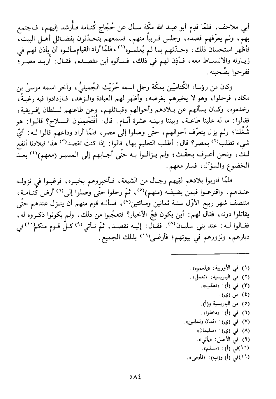 قَالَ: أَفَتَحْمِلُونَ السِّلَاحَ؟ قَالُوا: هُوَ شُغْلُنَا، وَلَمْ يَزَلْ يَتَعَرَّفُ أَحْوَالَهُمْ، حَتَّى وَصَلُوا إِلَى مِصْرَ، فَلَمَّا أَرَادَ وَدَاعَهُمْ قَالُوا لَهُ: أَيُّ شَيْءٍ تَطْلُبُ بِمِصْرَ؟ قَالَ: أَطْلُبُ التَّعْلِيمَ بِهَا، قَالُوا: إِذَا كُنْتَ تَقْصِدُ هَذَا فَبِلَادُنَا أَنْفَعُ لَكَ، وَنَحْنُ أَعْرَفُ بِحَقِّكَ، وَلَمْ يَزَالُوا بِهِ حَتَّى أَجَابَهُمْ إِلَى الْمَسِيرِ (مَعَهُمْ) بَعْدَ الْخُضُوعِ وَالسُّؤَالِ، فَسَارَ مَعَهُمْ.
