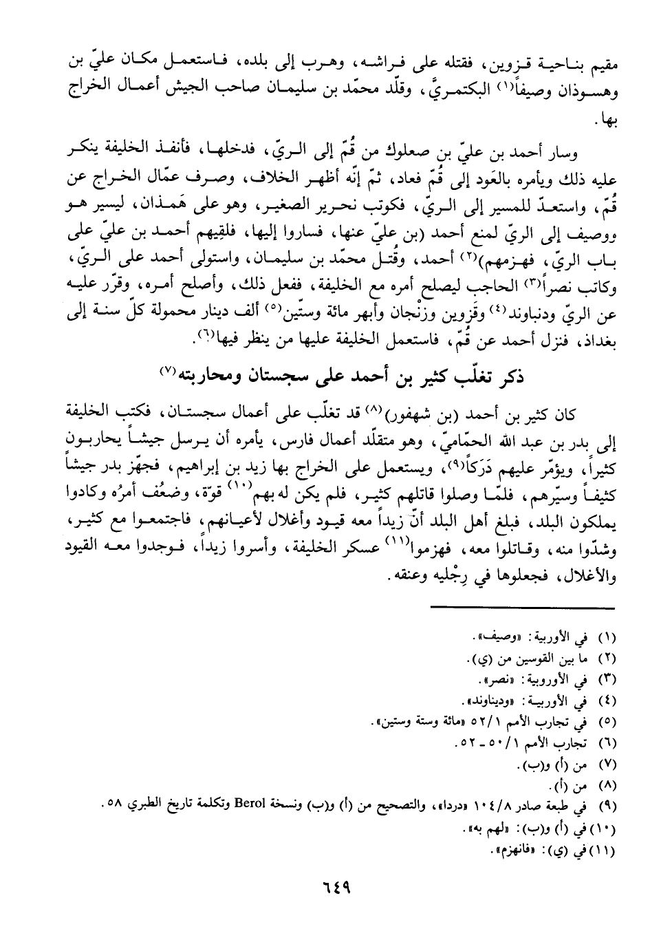 ذِكْرُ تَغَلُّبِ كَثِيرِ بْنِ أَحْمَدَ عَلَى سِجِسْتَانَ وَمُحَارَبَتِهِ
